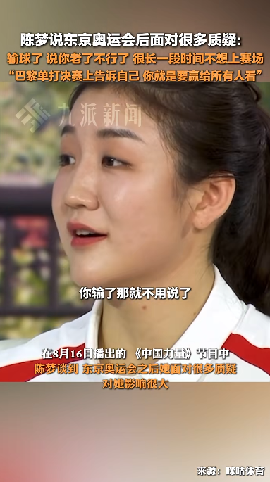 今年4月,中国乒乓球奥运冠军陈梦在做客中央广播电视总台某档直播节目中谈到了巴黎奥运会的相关话题。